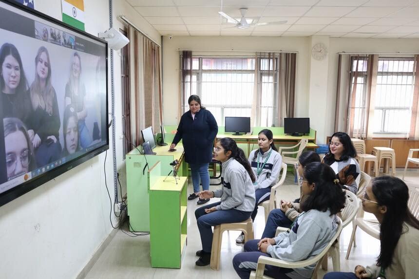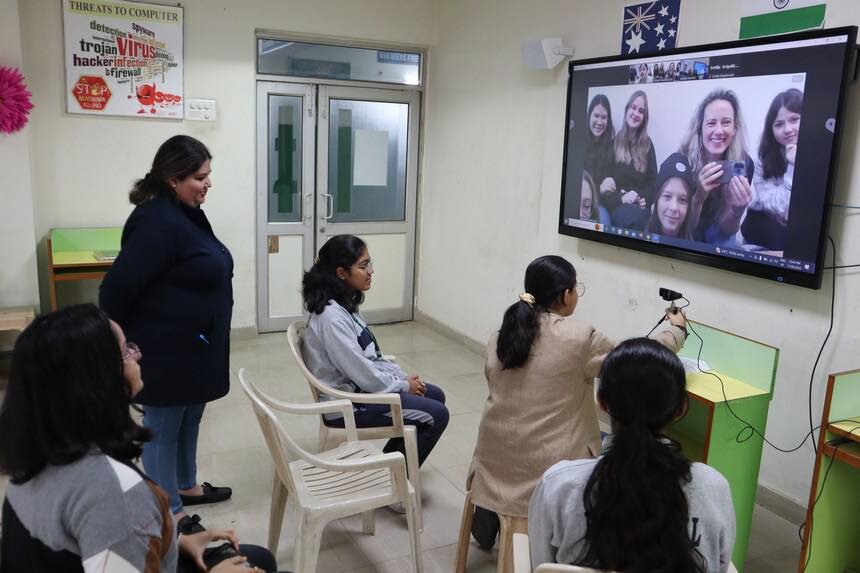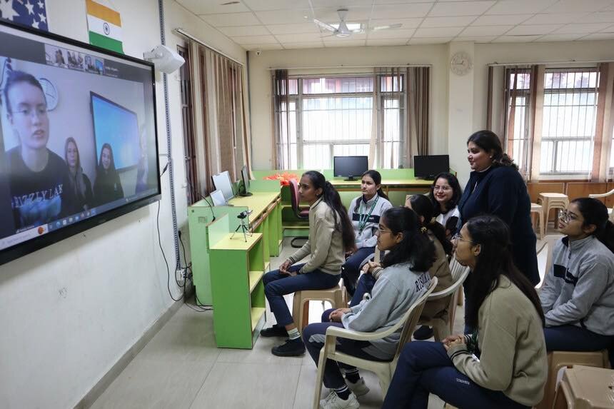 ŽIEŽMARIŲ GIMANZIJOS IR VILNIAUS ŽEMYNOS PROGIMNZIJOS mainų programos nariai 2023-11-28 d turėjo video konferenciją, kurios metu abiejų mokyklų delegacijos nariai susipažino su savo partneriais iš Indijos.
