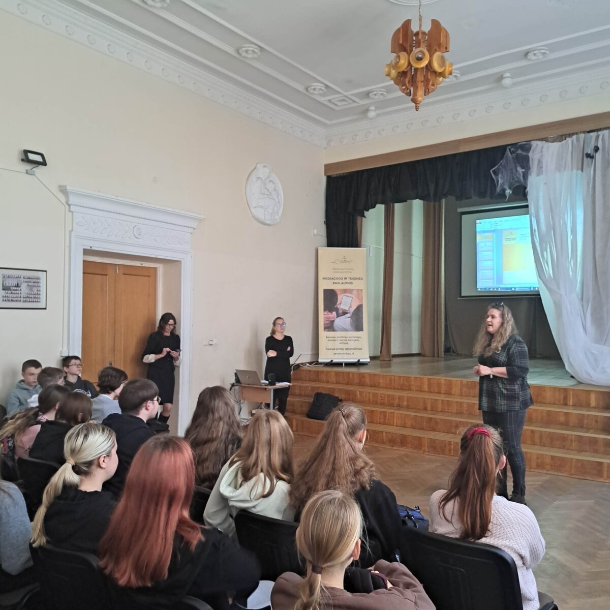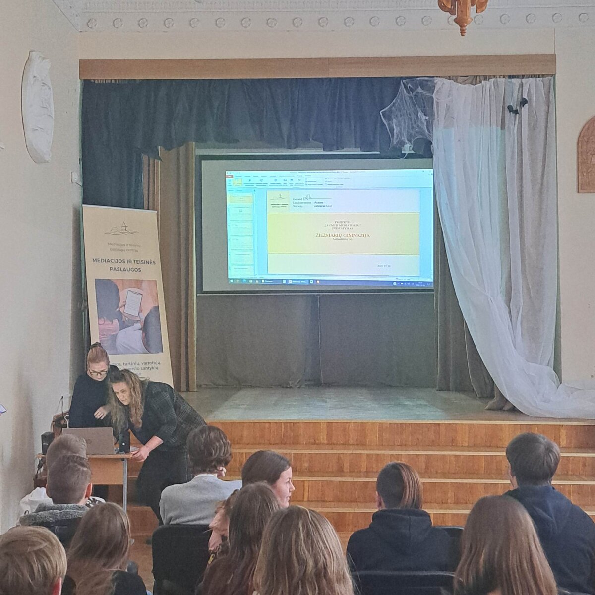 ir teisinių paslaugų centro projekto „Jaunieji mediatoriai" pristatyme.