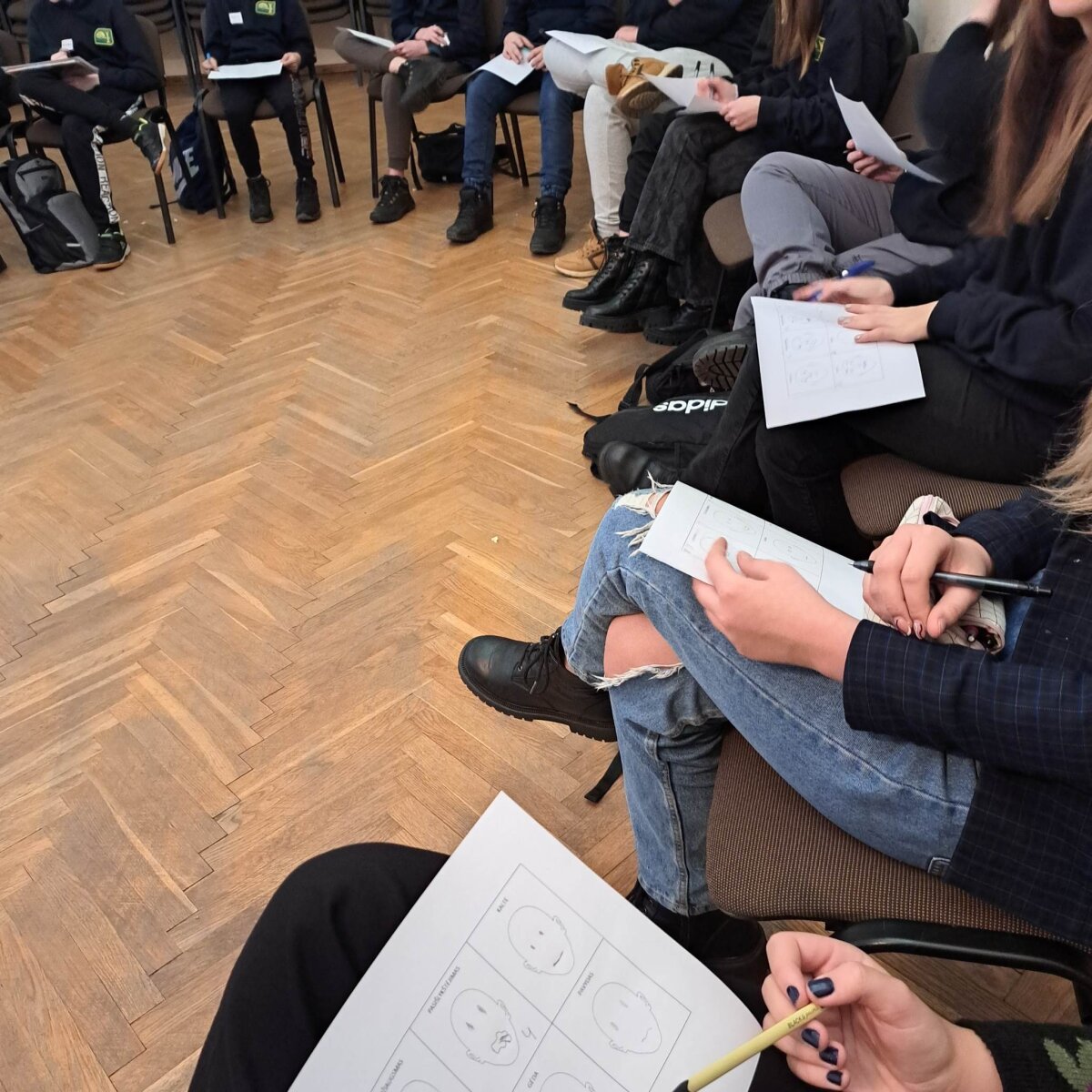 Gruodžio 6 dieną 4, 6b ir 8a klasės mokiniai dalyvavo edukaciniame renginyje „Emocijų kultūra“. Neuromokslininkė, edukatorė dr. Laura Vencė praktinių užsiėmimų metu kalbėjo apie tai, kaip kurti klasės kultūrą, kad kitiems būtų gera būti šalia.