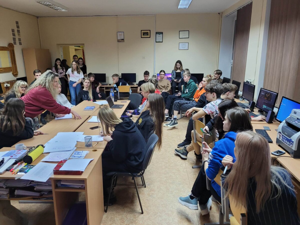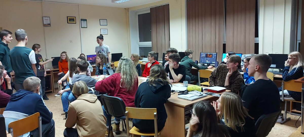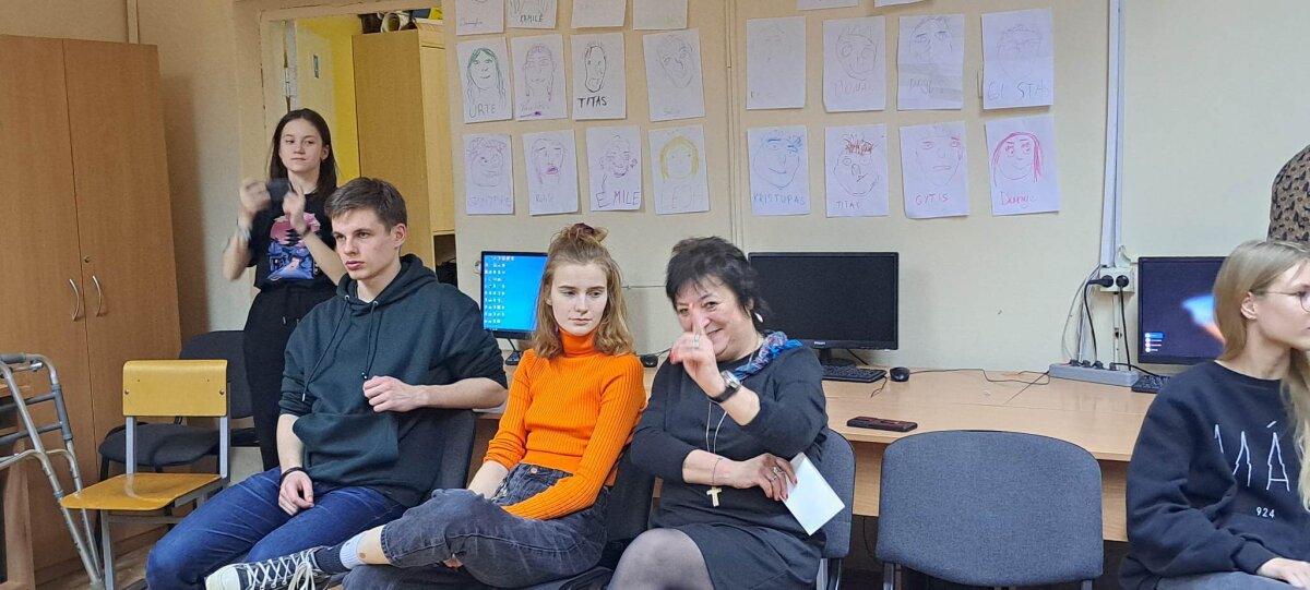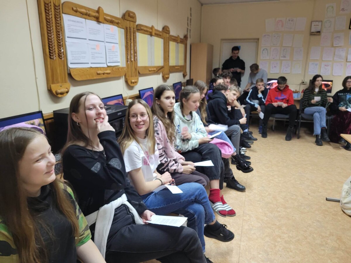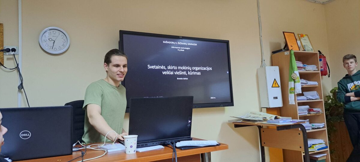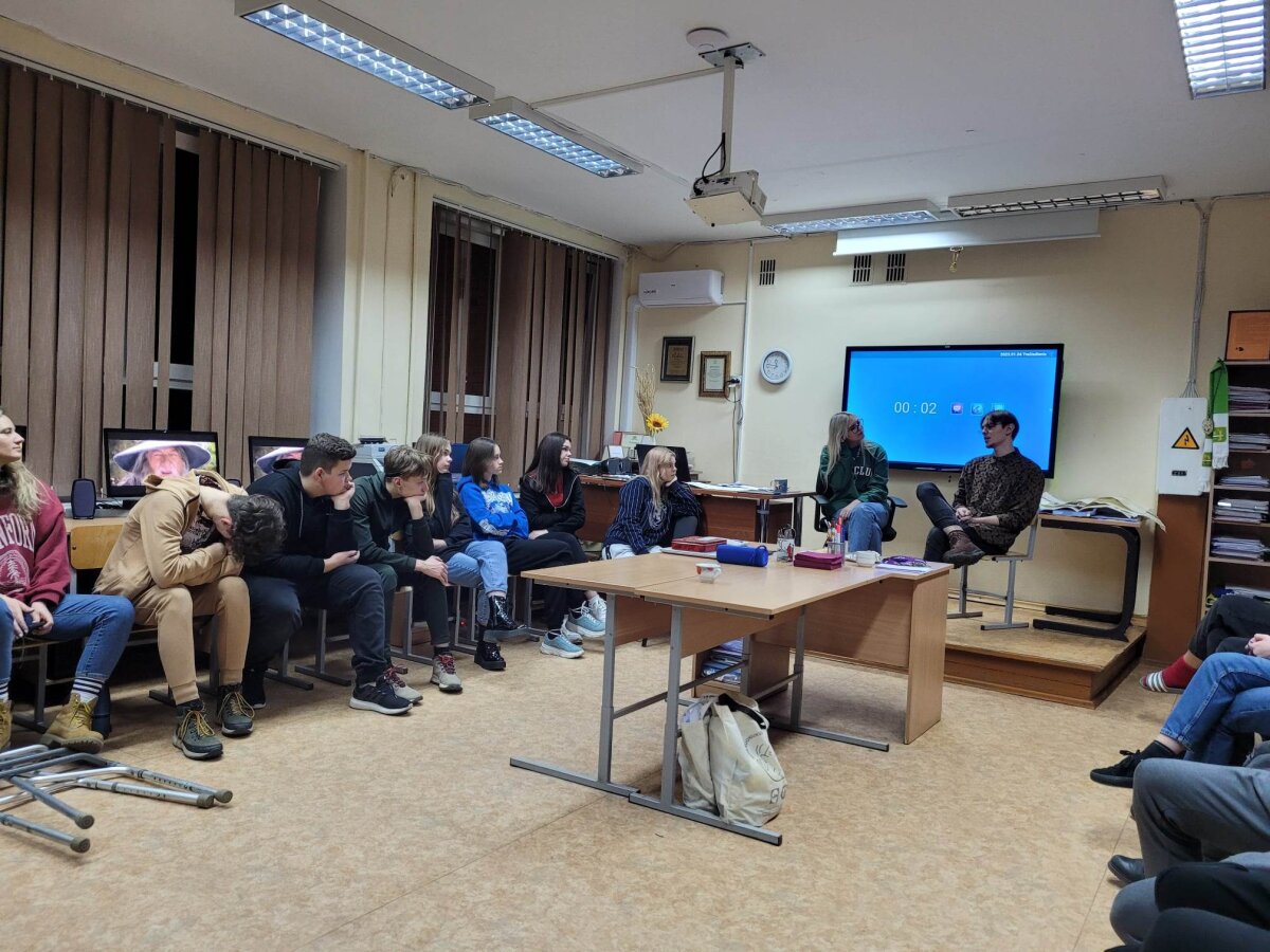Po laisvalaikio sporto salėje klubo nariai klausėsi paskaitos „IT studijų realybė“, kurią vedė Rokas Kancleris ir Meda Budrytė (buvę mūsų mokiniai, o dabar KTU studentai). Visiems buvo labai įdomu klausytis apie studijas ir nori ar nenori teko įsiklausyti į pamokymus apie mokymąsi mokykloje!
