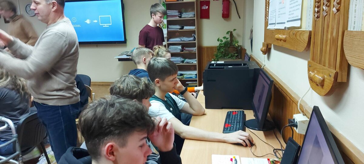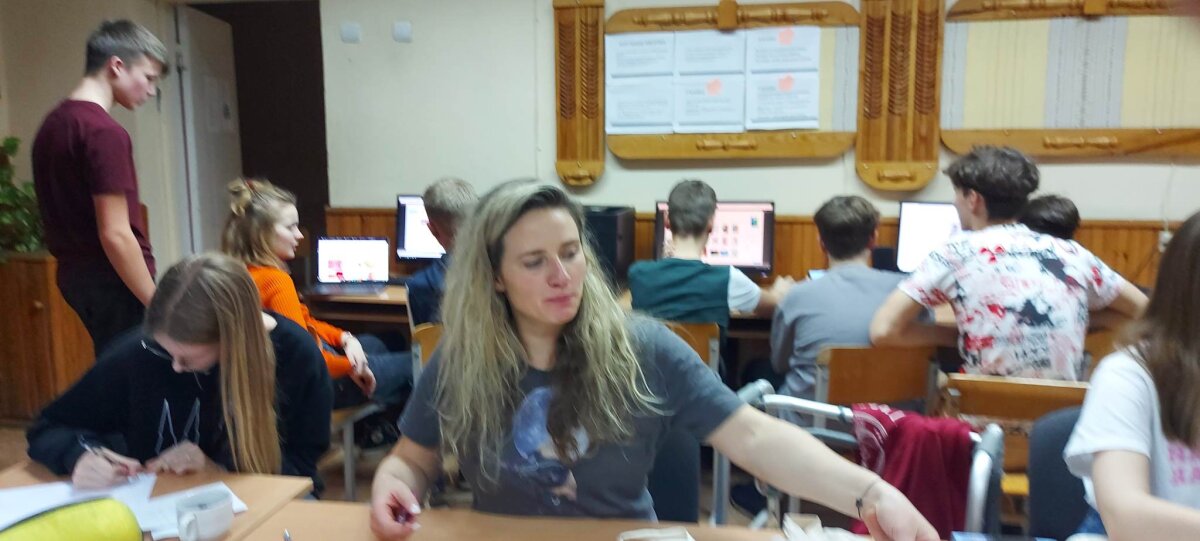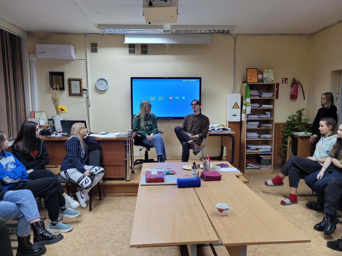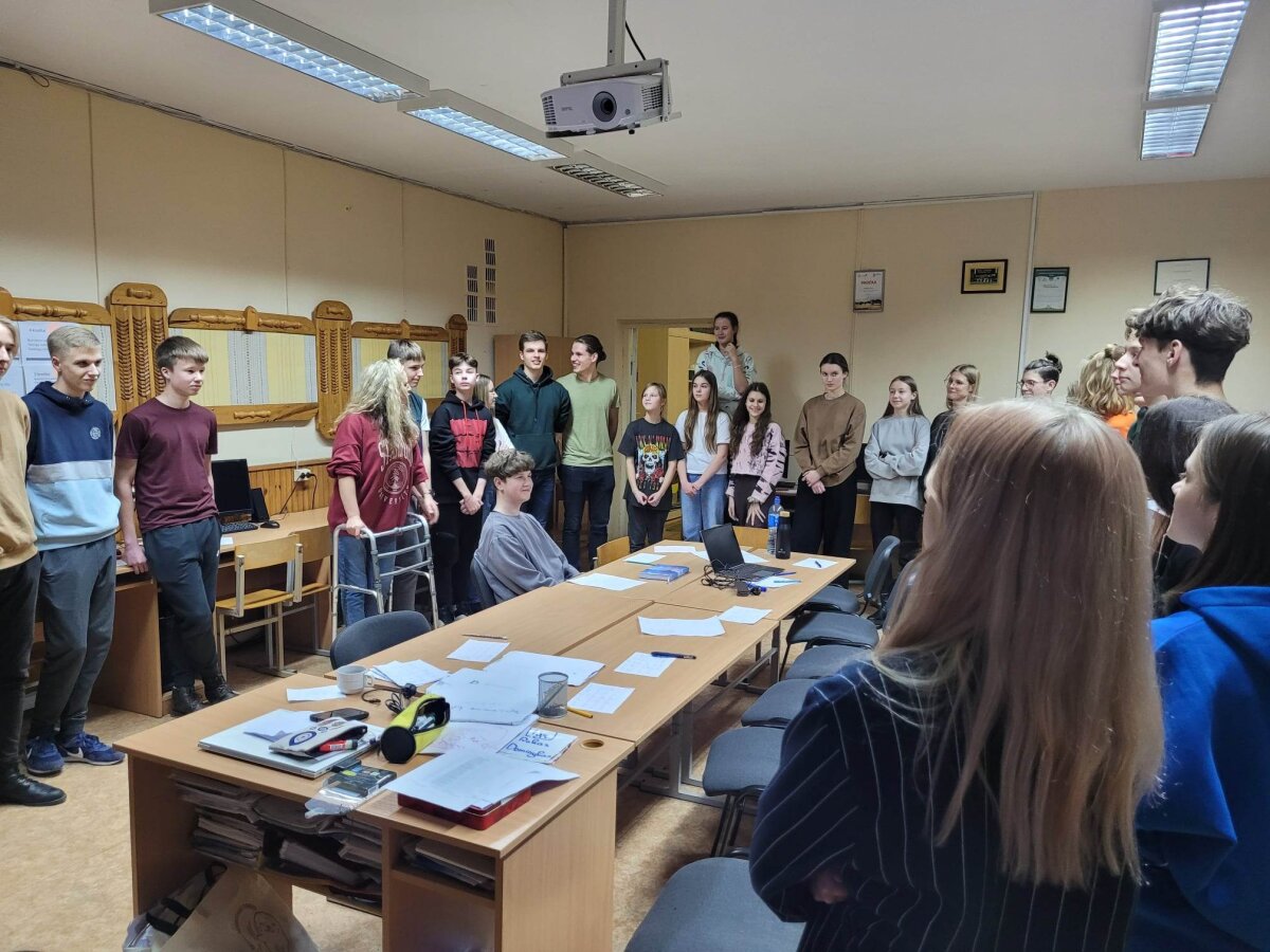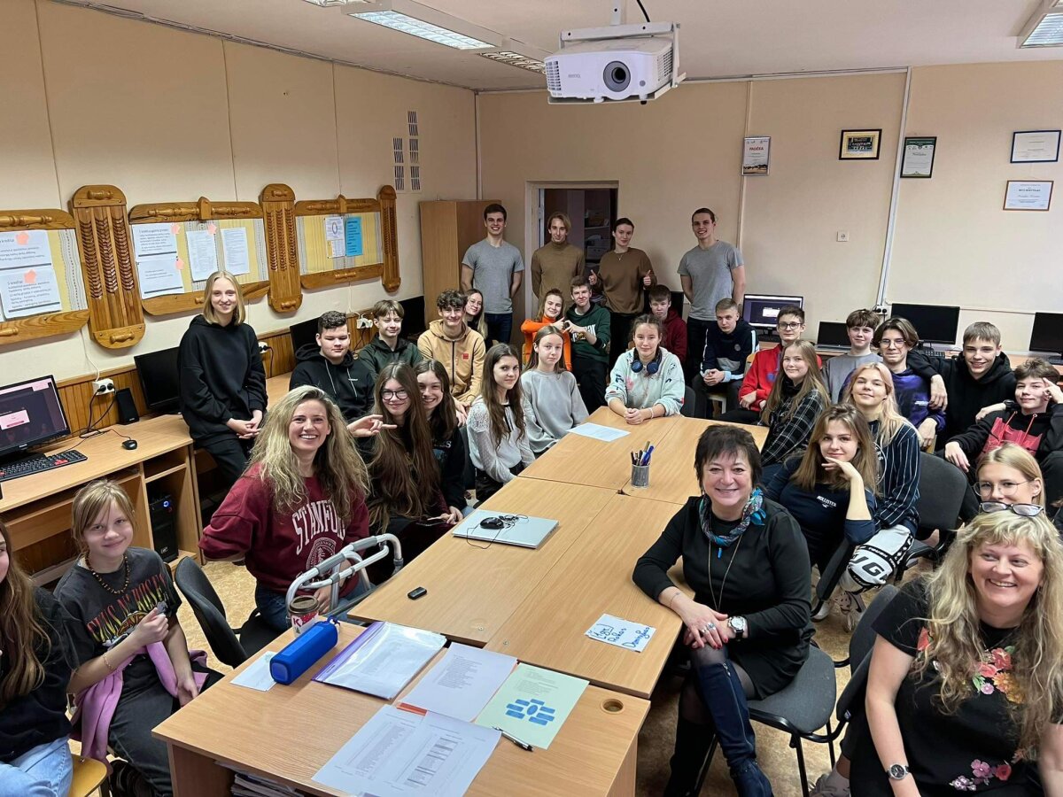 Po laisvalaikio sporto salėje klubo nariai klausėsi paskaitos „IT studijų realybė“, kurią vedė Rokas Kancleris ir Meda Budrytė (buvę mūsų mokiniai, o dabar KTU studentai). Visiems buvo labai įdomu klausytis apie studijas ir nori ar nenori teko įsiklausyti į pamokymus apie mokymąsi mokykloje!