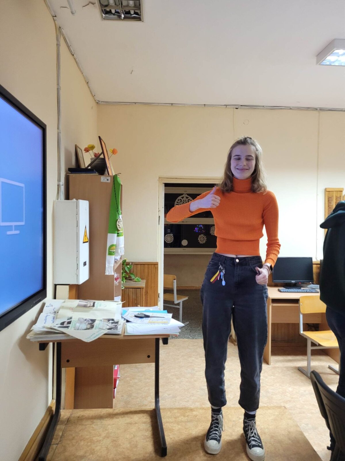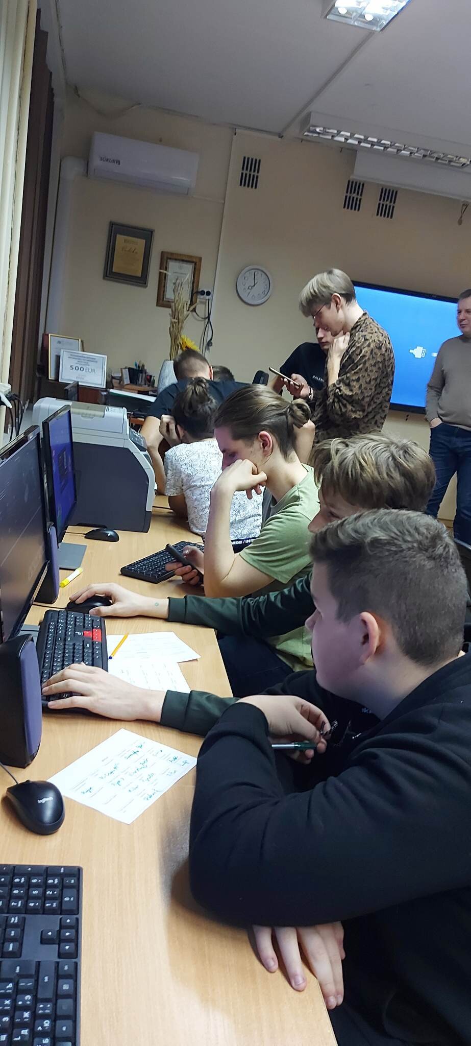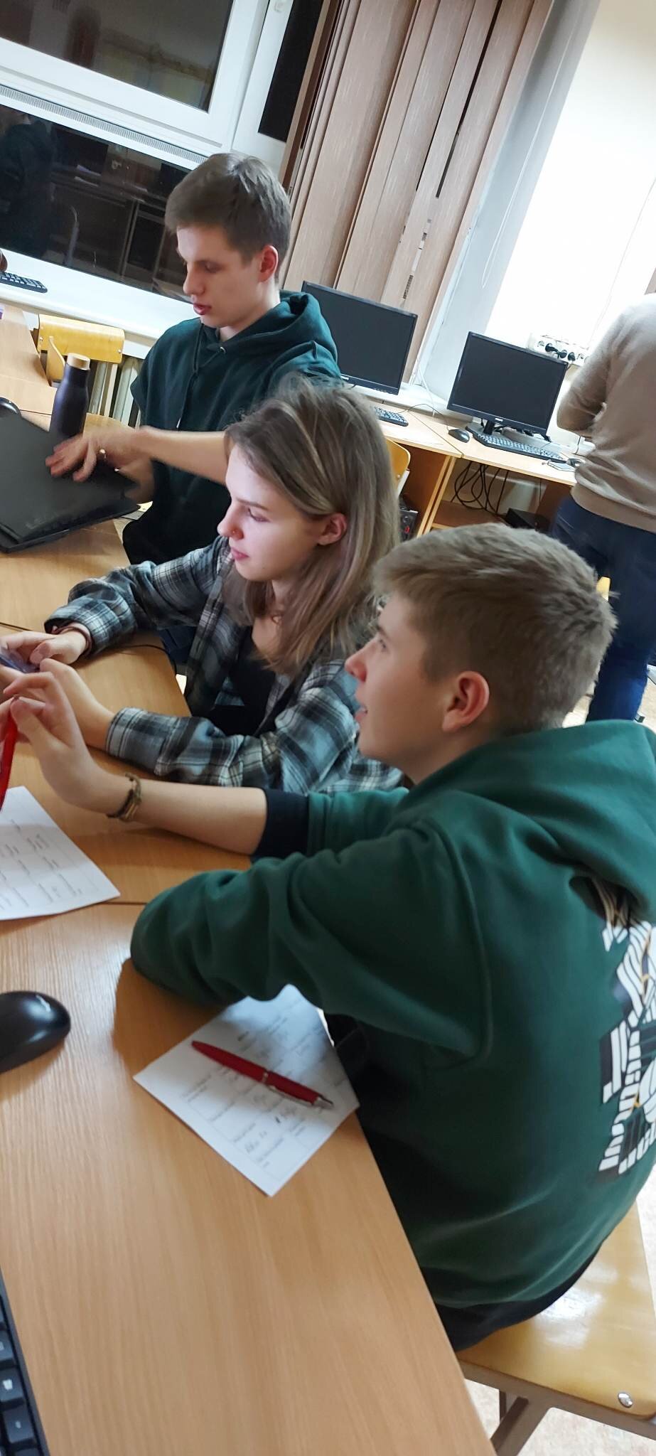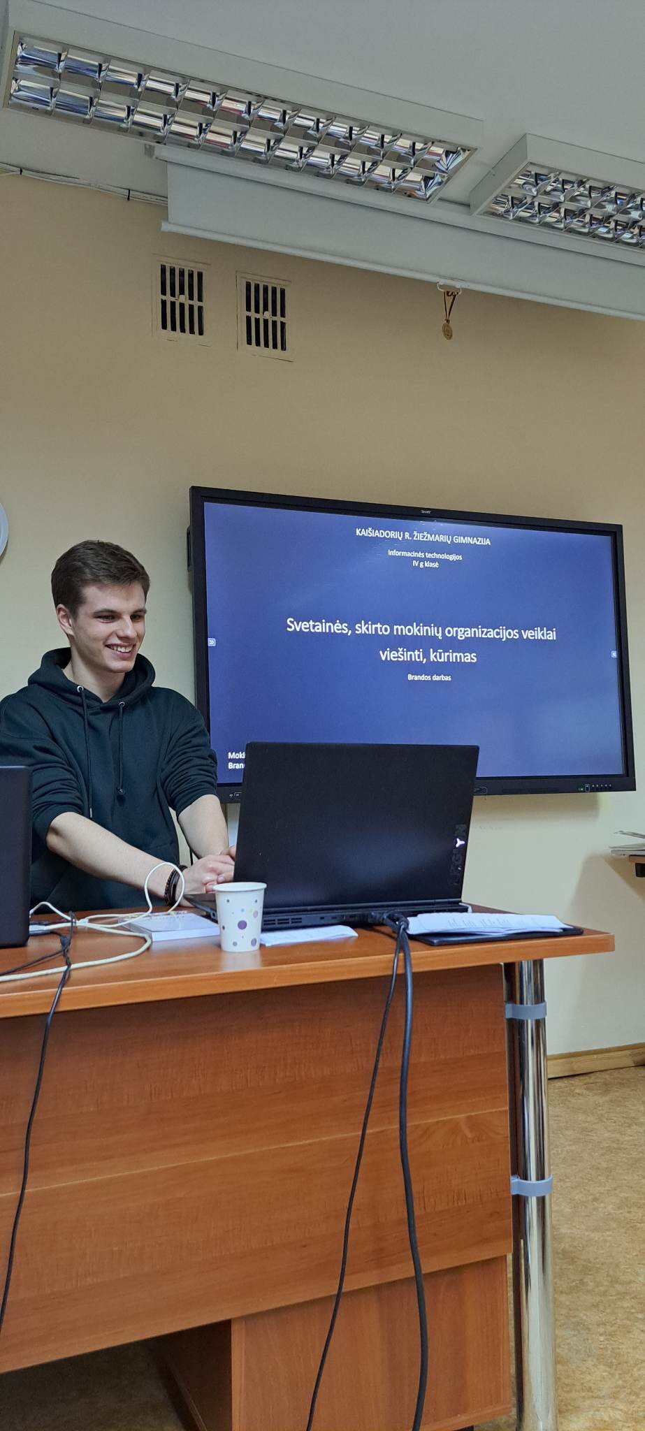 Po laisvalaikio sporto salėje klubo nariai klausėsi paskaitos „IT studijų realybė“, kurią vedė Rokas Kancleris ir Meda Budrytė (buvę mūsų mokiniai, o dabar KTU studentai). Visiems buvo labai įdomu klausytis apie studijas ir nori ar nenori teko įsiklausyti į pamokymus apie mokymąsi mokykloje!