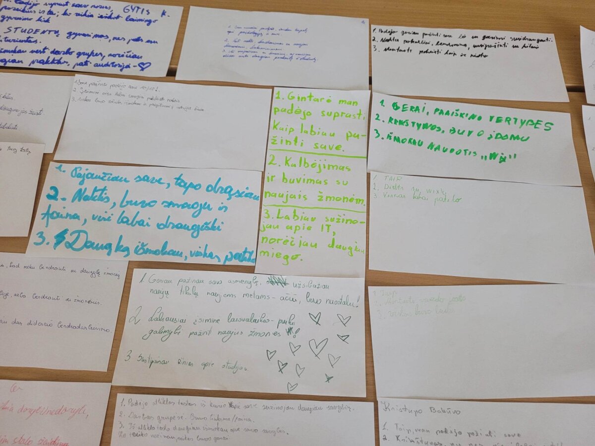 Įspūdžių užteko kiekvienam, nes veikla sekė minutė po minutės ir laikantis sudarytos darbotvarkės: „miegamųjų“ cokoliniame aukšte pasiruošimas, laikas socializacijai (vedė Vilniaus Žemynos progimnazijos mokytoja Gintarė Razulevičiūtė), mokymai (vedė Gytis Kaulakis), klubo senbuviai „Jauniai“ naujokus supažindino su klubo veikla, bei vykdytais projektais!