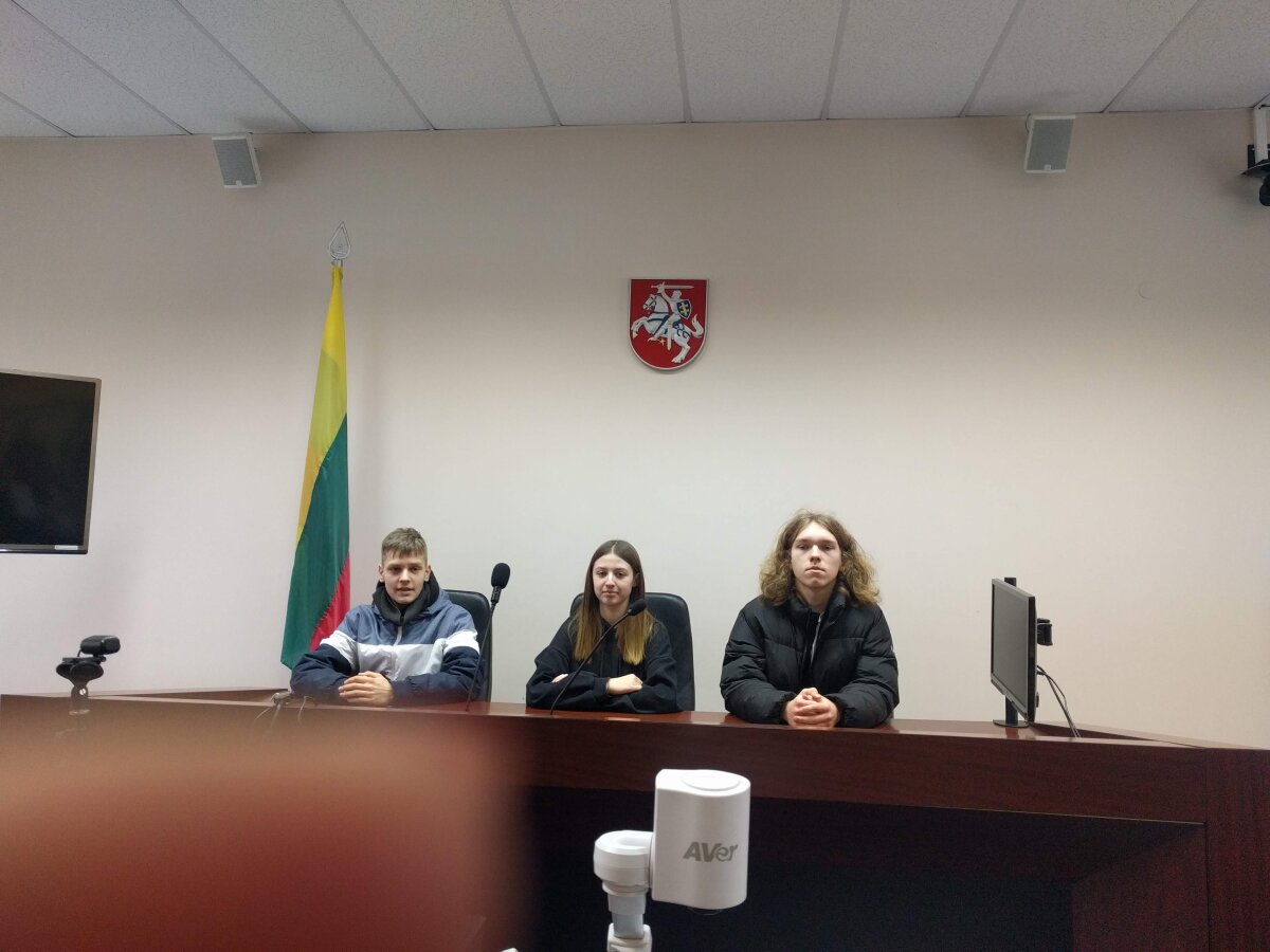 Gimnazistai galėjo ,,pasimatuoti“ teisėjo kėdę ir teisiamojo suolą, apžiūrėti teisiamųjų laukimo kameras. Apsilankėme ir civilinių bylų salėje, raštinės biure.