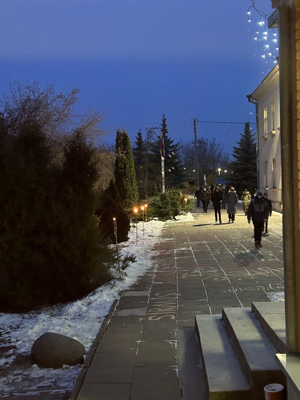 Ateinančių į mokyklą taką, apšvietė 14 fakelų, kurie simbolizavo žuvusius Laisvės gynėjus.