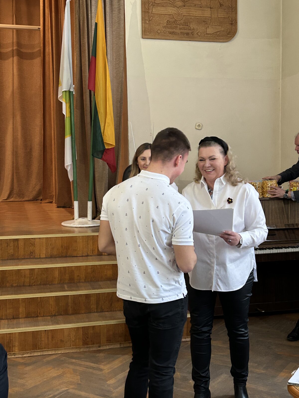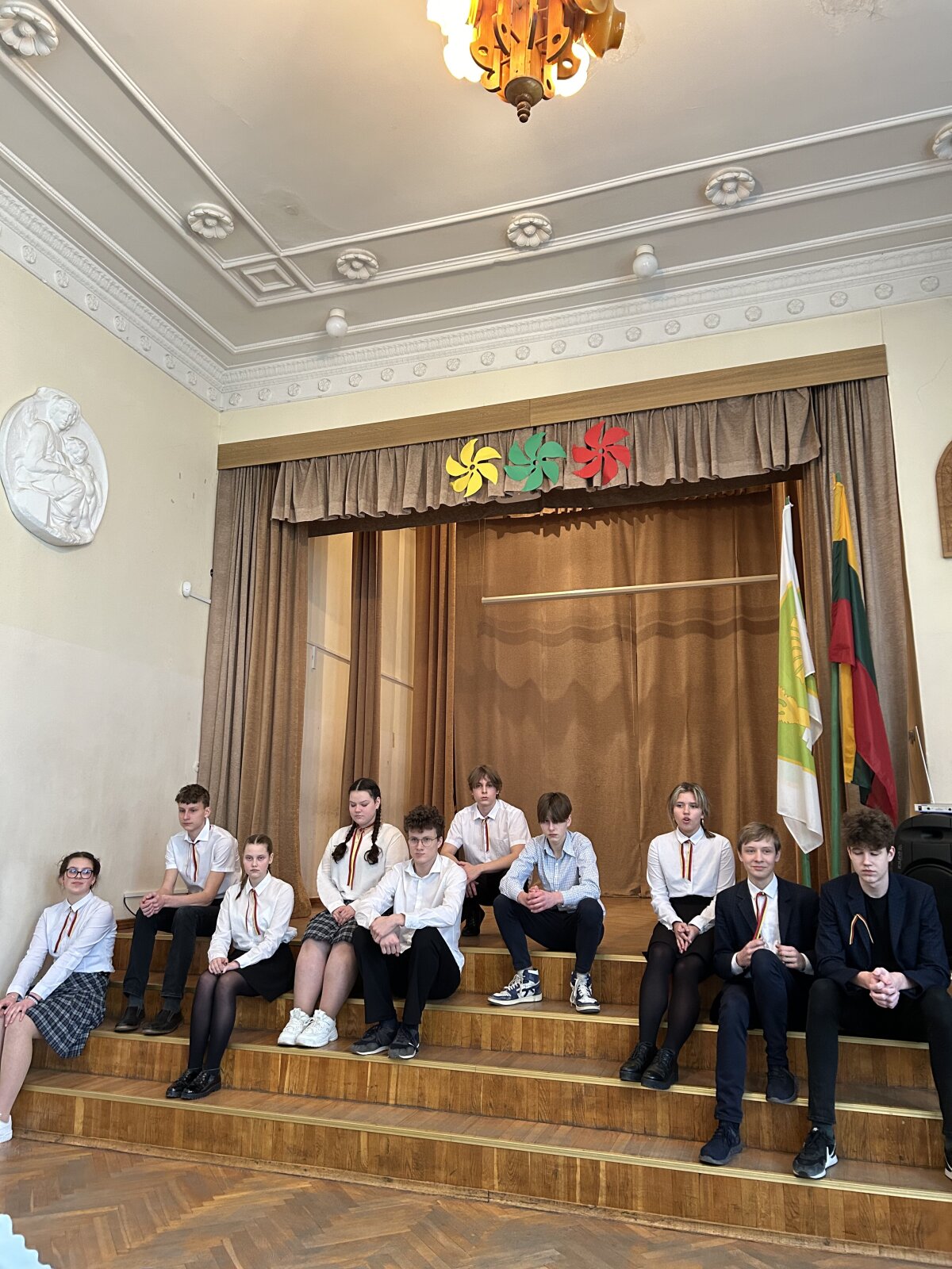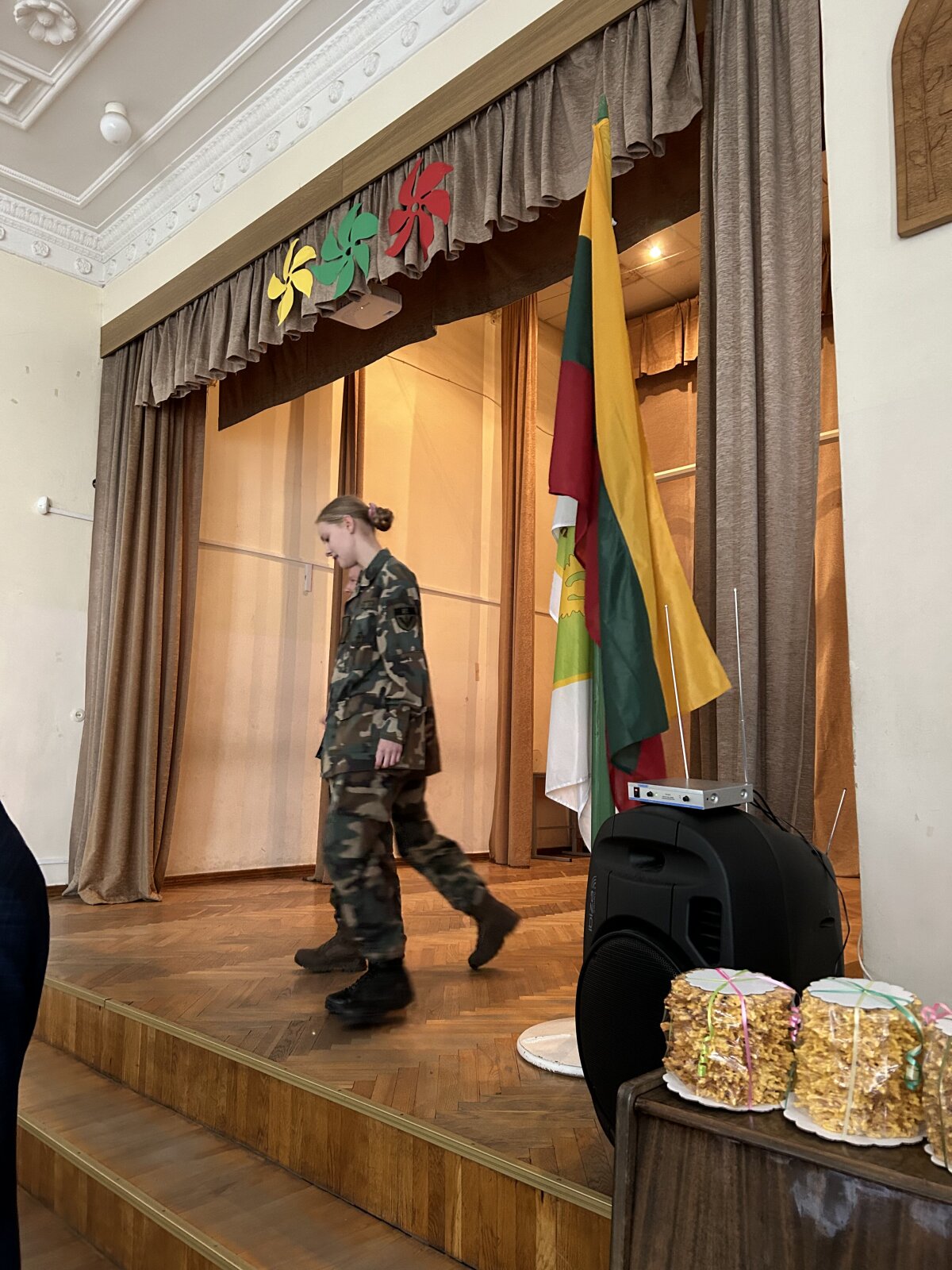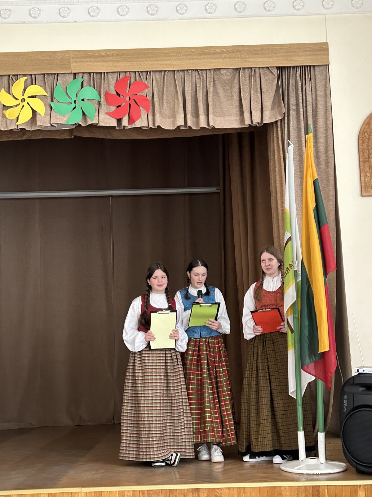 Visus renginio dalyvius su daina sveikino 7b klasės mokinė Gabija Nanartavičiūtė ir jos muzikos mokytoja Renata Balčiūnienė. Gimnazistų renginyje sveikinimą Lietuvai skyrė ir gimnazijos mokytojai, jie atliko Vytauto Kernagio dainą ,Mano gimtinė“. Visą dieną gimnazijoje sklandė, pakili, šventiška nuotaika. Džiaugėmės, kad mokiniai atsakingai pasiruošė, parodė savo gebėjimus dainuodami, šokdami, deklamuodami eiles, patys grodami muzikos instrumentais, pritardami ritmiškais plojimais klasės draugams ar iškeldami Lietuvos trispalvę.