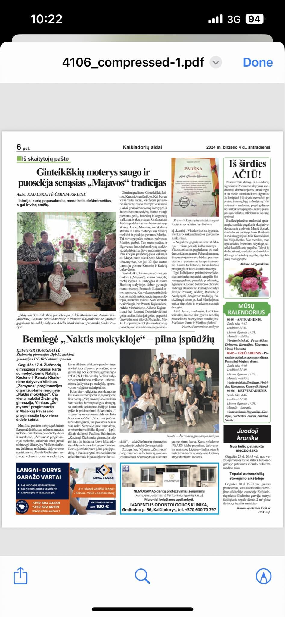 Izabelė Grybauskaitė - Žiežmarių gimnazijos I*EARN klubo atstovės spaudai (šis straipsnis rajoninėje spaudoje)