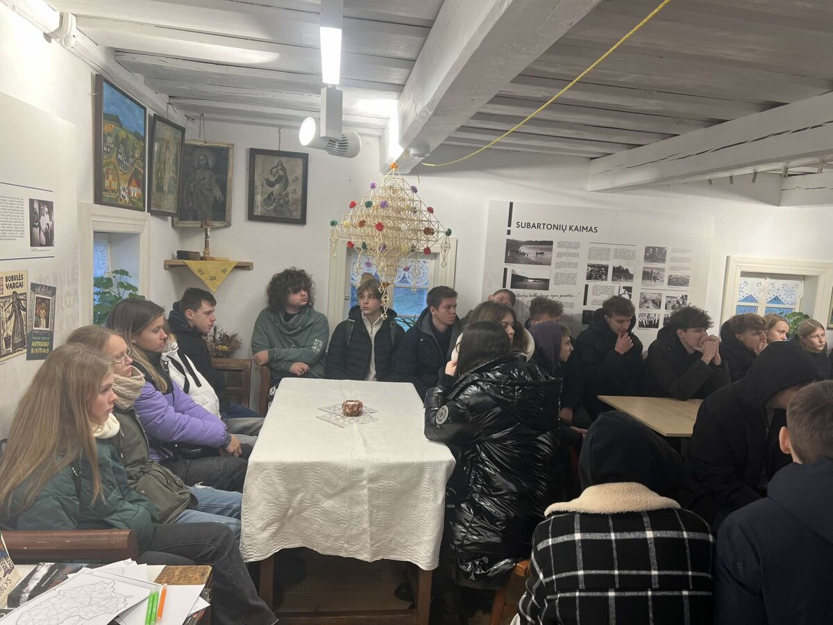 Kelionės pradžia buvo Subartonys ir kaime esantis V. Krėvės – Mickevičiaus memorialinis muziejus. Dalyvavome edukacijoje ,,V. Krėvė – lyderis, tapęs legendine asmenybe“. Išgirdome įdomių istorijų ne tik apie patį rašytoją, bet ir apie jo kūrybinę, politinę, visuomeninę veiklą. Pasikartojome patarles, dainavome dzūkišką dainą. Atsisveikinę su gide, išvykome į Merkinės krašto muziejų. Čia pirmiausiai apžiūrėjome daug įdomių eksponatų, tada klausėsmės gido pasakojimo apie Lietuvos partizanus ir jų išskirtinę drąsą. Žinoma, buvo išskirta A.Ramanausko – Vanago, partizanų lyderio, asmenybė. Skaitėme ištraukas iš partizano L. Baliukevičiaus – Dzūko dienoraščio. Iš muziejaus kartu su gidu ėjome prie Vanago paminklo, aplankėme Merkinės kryžių kalnelį, kur yra memorialas Lietuvos partizanams, žuvusiems už Lietuvos laisvę kovose su sovietais.