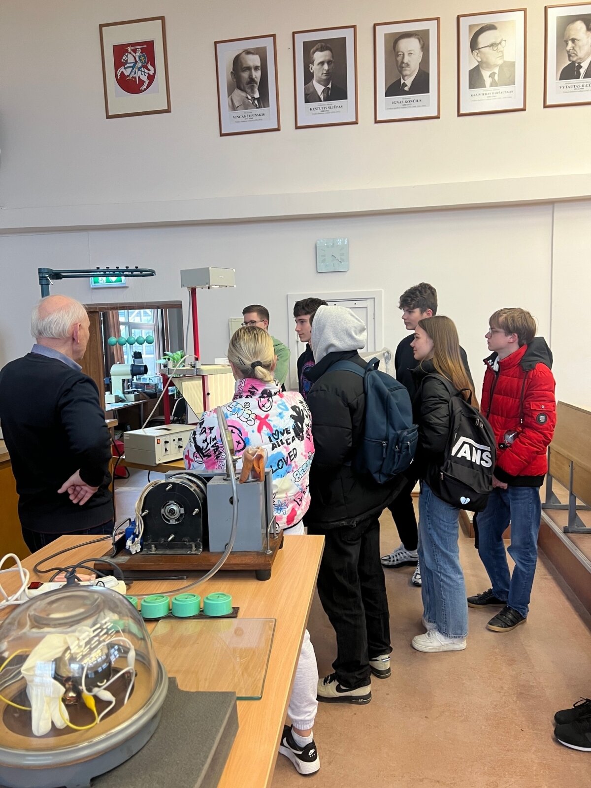 Kovo 27 dienos ankstų rytą dešimtokai ir dvyliktokai su fizikos bei chemijos mokytojomis Aldona Visockiene, Aušra Zablackiene leidosi į turiningą kelionę po Kauną, kurios metu aplankė svarbias mokslo ir technologijų įstaigas. Tai buvo galimybė ne tik pagilinti fizikos ir chemijos žinias, bet ir smagiai praleisti laiką su bendraklasiais.