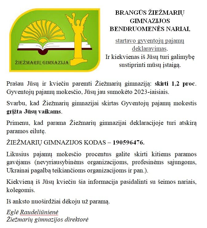 Mieli mokiniai, tėveliai, globėjai ir kiti Žiežmarių gimnazijos bendruomenės nar... -